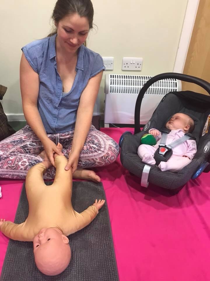 I always have a spare dolly, so if your baby drifts off to sleep, you can practise with a demo doll. Each class includes two separate massage sections and baby may be ready for massage later in the class. You can relax, cuddle or feed your baby, and just listen and watch with the intention of trying the strokes later guided by your parent handbook.
