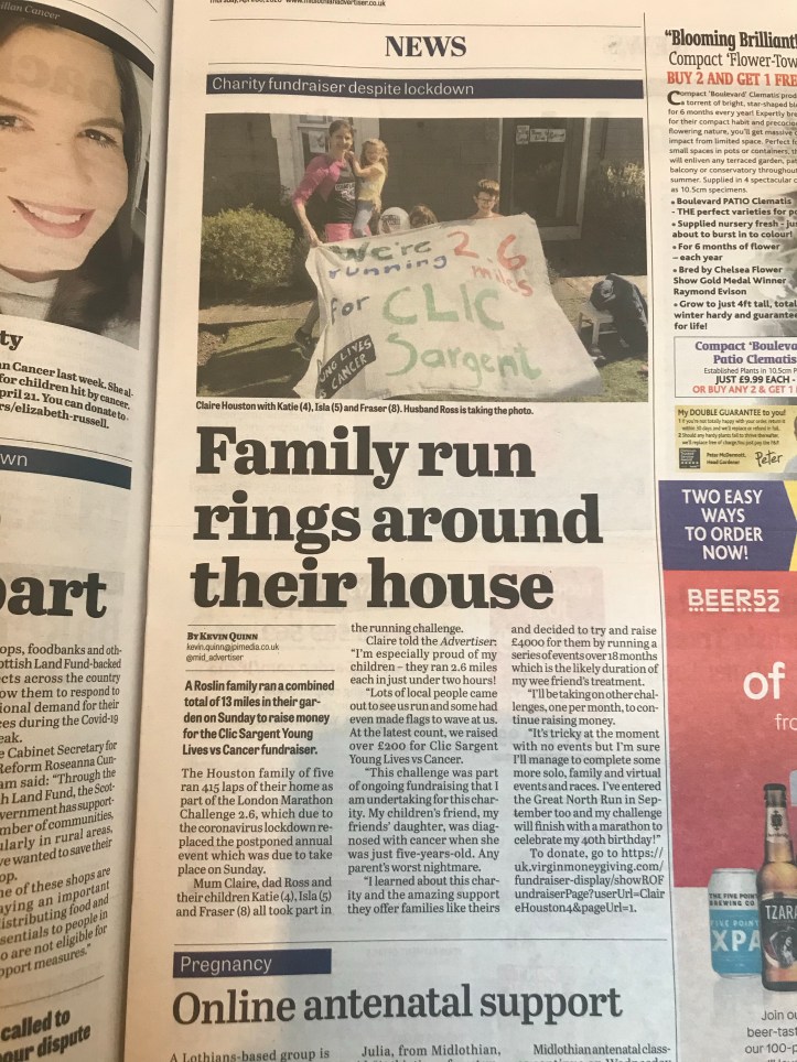 **April 2020** Charity Fundraising in our garden during lockdown!